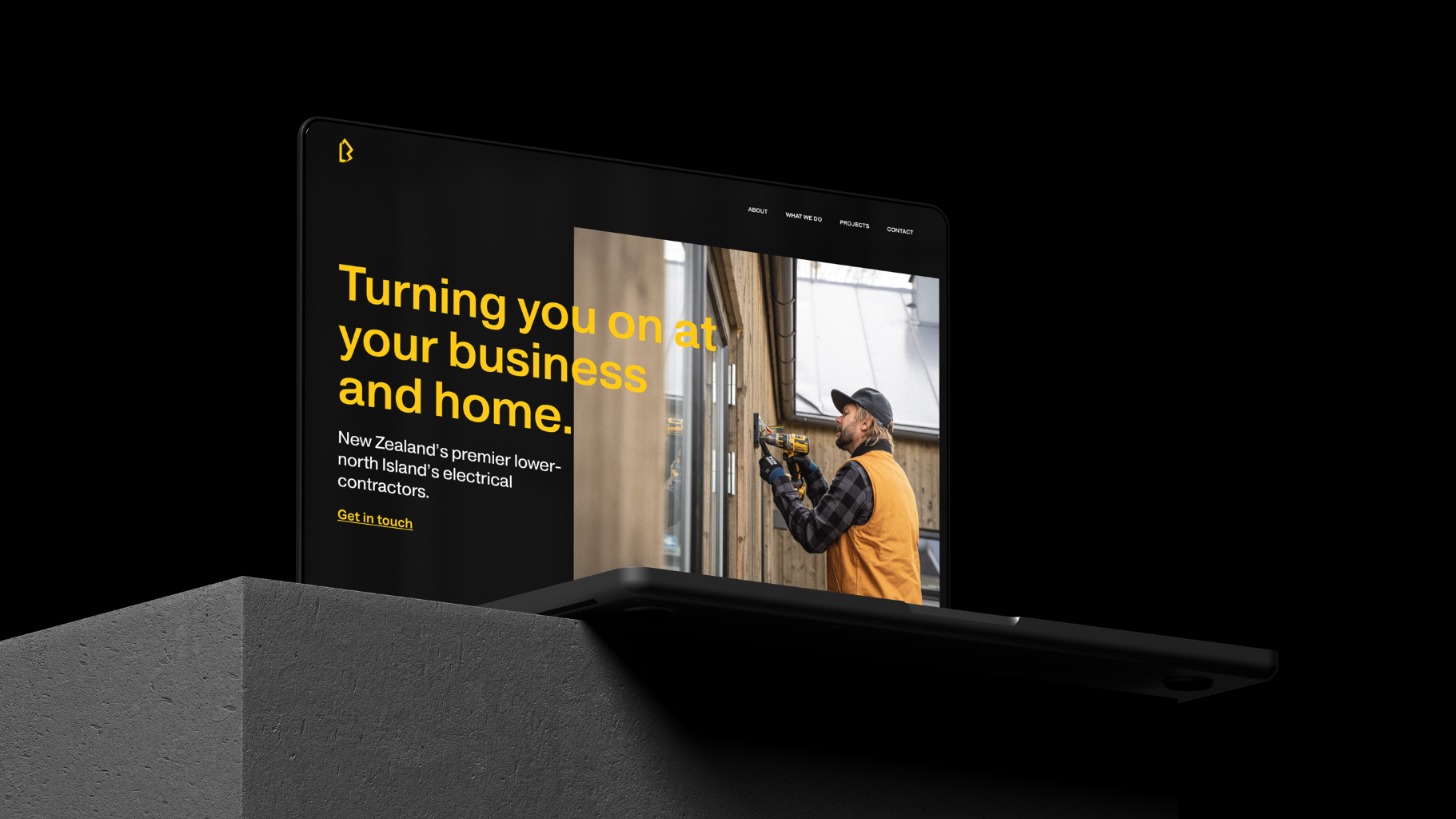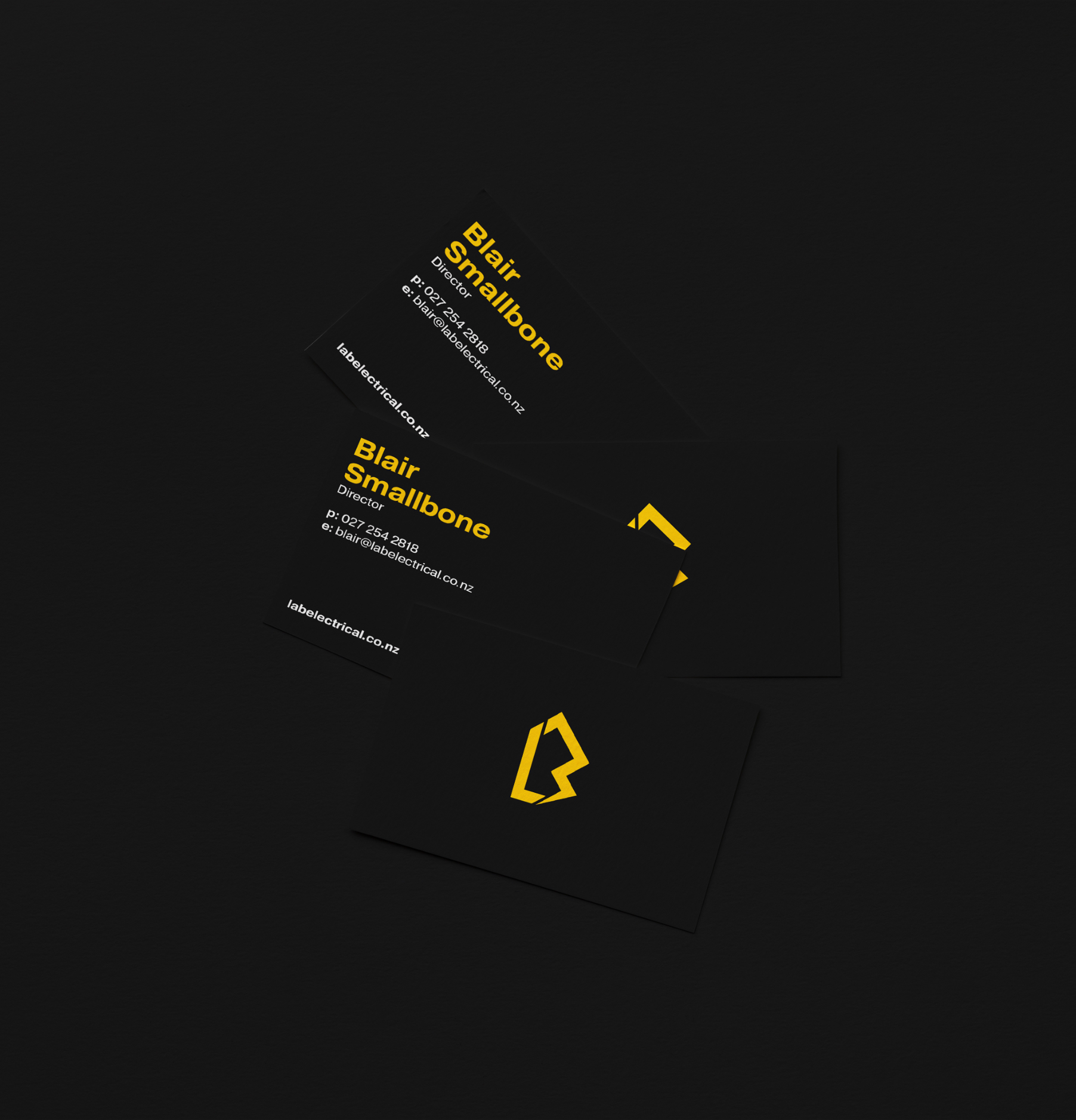 The logo mark is a monogram that brings together L, the B and electricty. L.A.B. works across the board of electritans, so the top half of the logo subtly represents a residential or a commercial building and isn't specific to one part of the trade.